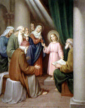 Our Father... 1. And when he was twelve they went up for the celebration as was their custom. (Lk. 2: 42) - Hail Mary... 2. As they were returning at the end of the feast, the child Jesus remained behind unknown to his parents. (Lk 2: 43) - Hail Mary... 3. Thinking he was in the party, they continued their journey for a day, looking for him among their relatives and acquaintances. (Lk. 2: 44) - Hail Mary... 4. Not finding him, they returned to Jerusalem in search of him. (Lk. 2: 45) - Hail Mary... 5. On the third day they came upon him in the temple sitting in the midst of the teachers....All who heard him were amazed at his intelligence and his answers. (Lk. 2: 46-47) - Hail Mary... 6. And his mother said to him: "Son, why have you done this to us? You see that your father and I have been searching for you in sorrow." (Lk. 2: 48) - Hail Mary... 7. He said to them; "Why did you search for me? Did you not know I had to be in my Father's house?" (Lk. 2: 49) - Hail Mary... 8. But they did not grasp what he said to them. (Lk. 2: 50) - Hail Mary... 9. He went down with them then, and came to Nazareth, and was obedient to them. (Lk. 2: 51) - Hail Mary... 10. His mother meanwhile, kept all these things in memory. Jesus, for his part, progressed steadily in wisdom and age and grace before God and men. (Lk. 2: 51-52) - Hail Mary... Glory be to the Father, and to the Son, and to the Holy Spirit. As it was in the beginning, is now, and ever shall be, world without end. Amen. O my Jesus, forgive us our sins. Save us from the fires of Hell; lead all souls into Heaven, especially those in most need of Thy mercy. Amen. Continue Main Page |